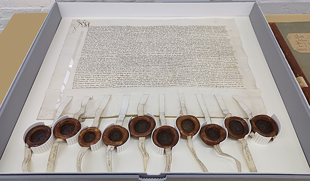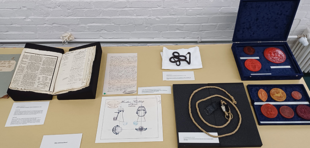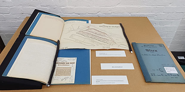 Den Abschluss der Führung bildete eine kleine Archivalien-Präsentation, bei der das Archivpersonal unterschiedliche Quellengattungen vorstellte.
