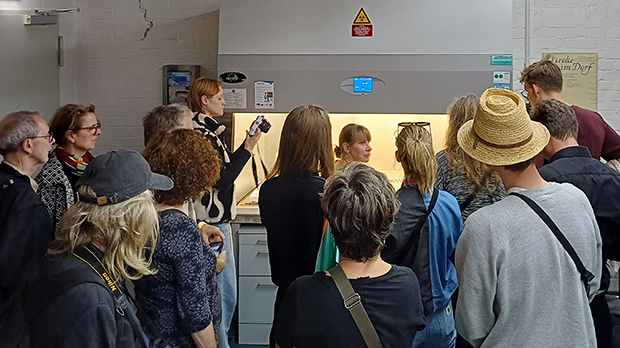 Dem folgte eine kurze Einführung zur Geschichte, den Überlieferungen und Aufgaben des Geheimen Staatsarchivs Preußischer Kulturbesitz. Thematisiert wurde auch die Historie des Berliner Westhafens, insbesondere die des Getreidespeichers von seiner Planung über die Eröffnung im Jahre 1923 bis zur gegenwärtigen Nutzung als Archivmagazin.